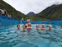 После обеда и размещения мы отправились в горы, окунуться в ваннах с водой из тёплых родоновых источников. По дороге заехали в село Теплоключенка в храм в честь святого вмч. Димитрия Солунского. По возвращению мы пропели акафист иконе Божией Матери "Тихвинская". На ночлег остались в отличных кельях для паломников при храме.