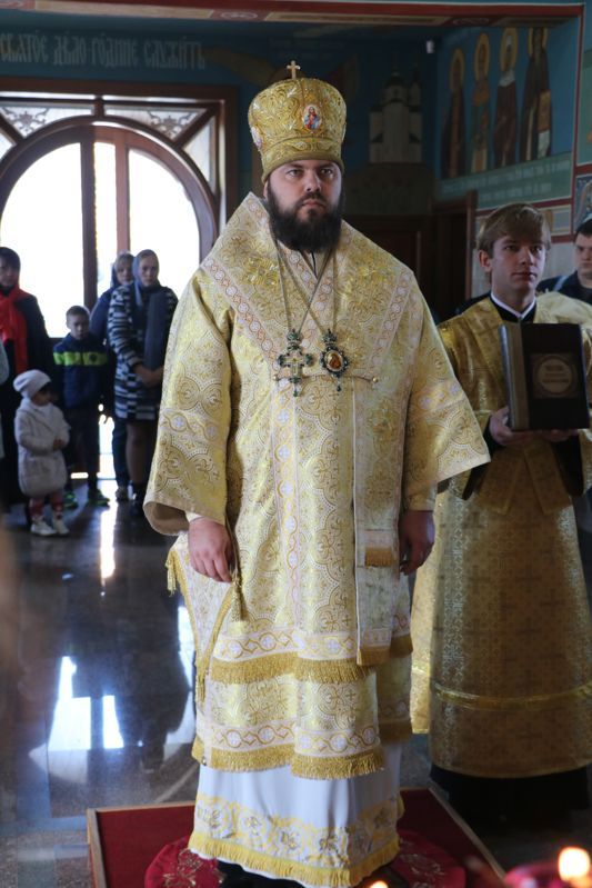 Его Преосвященству сослужили: насельник Свято-Троицкой Александро-Невской лавры игумен Макарий (Зеленков), настоятель Александро-Невского храма иерей Евгений Циклаури, ключарь Свято-Воскресенского собора иерей Георгий Дворовой.