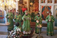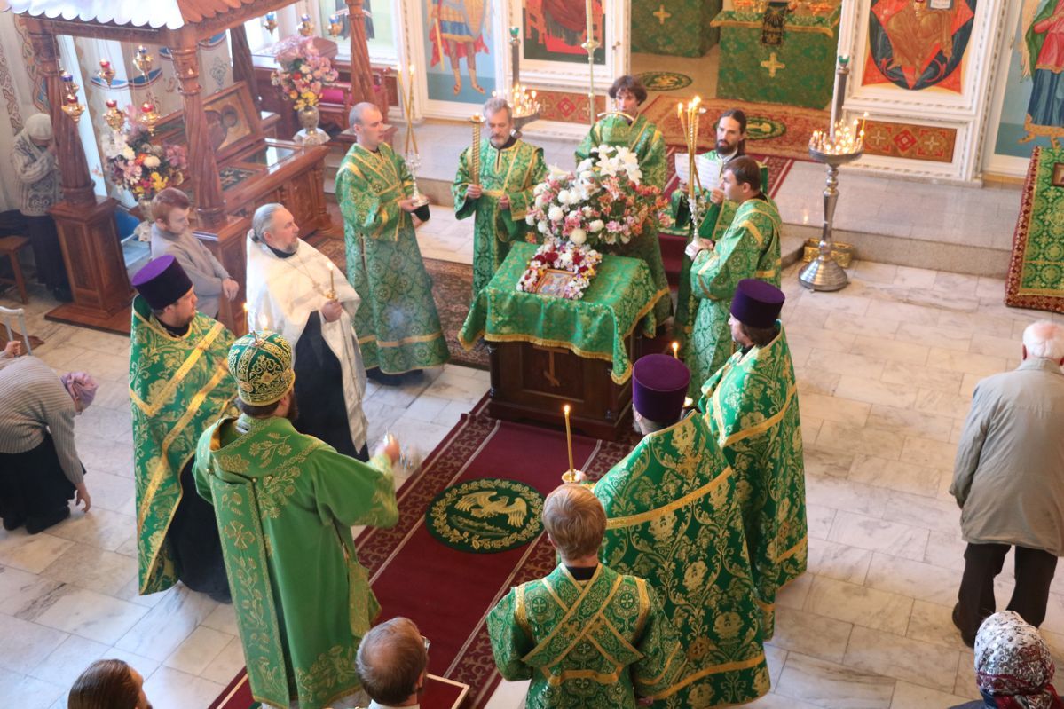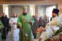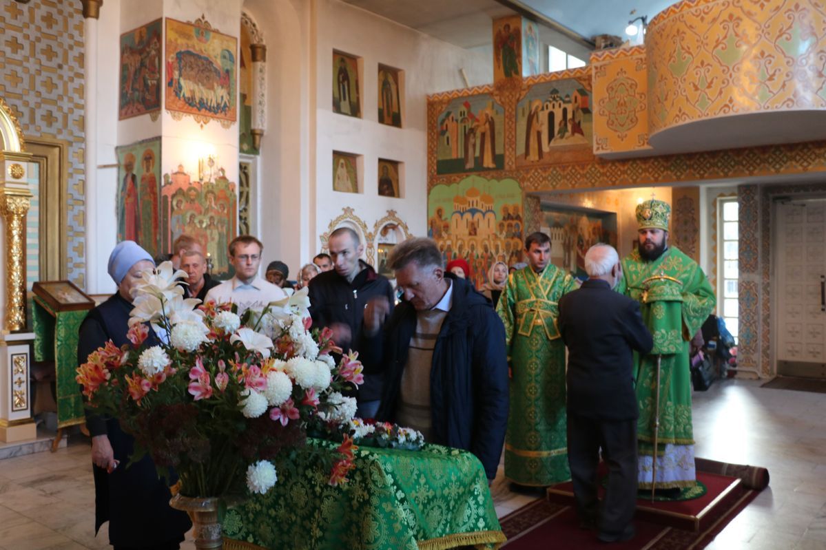 Его Преосвященству сослужили: настоятель храма святого праведного Иоанна Кронштадтского протоиерей Андрей Борисенко, ключарь Свято-Воскресенского собора иерей Георгий Дворовой, клирик Свято-Воскресенского собора иерей Олег Белотуркин, иерей Вадим Паскин.