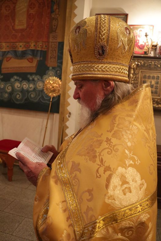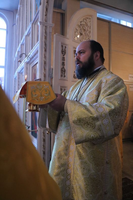 Его Преосвященству сослужили: митрофорный протоиерей Валентин Никонов, клирик Свято-Воскресенского собора иерей Олег Белотуркин.