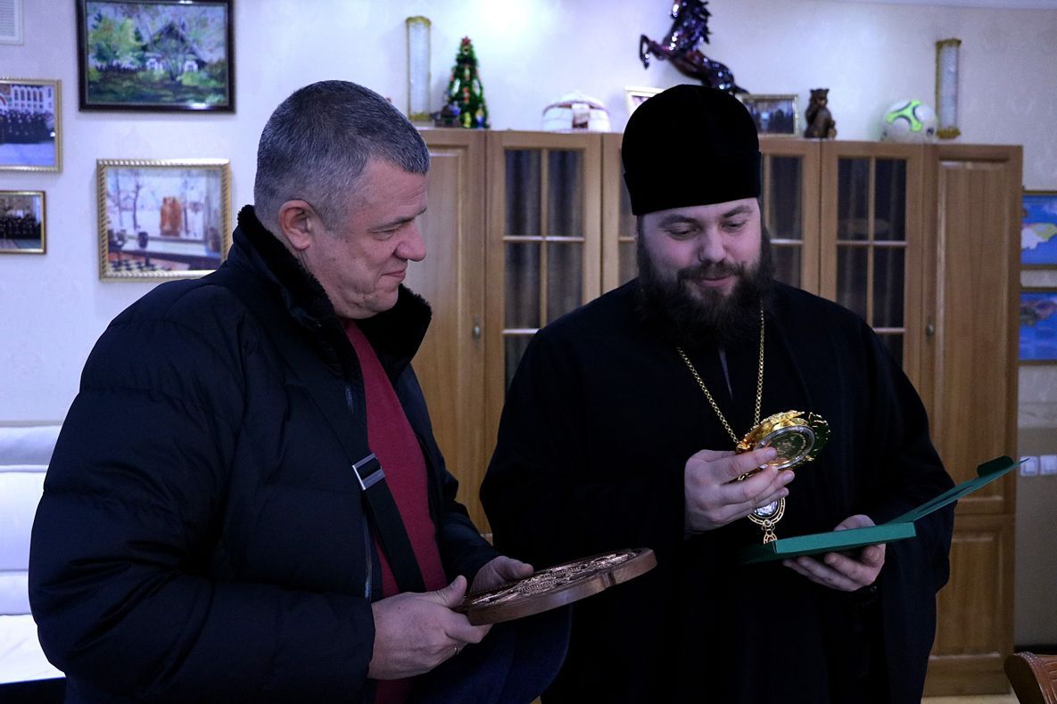 Его Преосвященство вручил Александру Леонидовичу памятные подарки, переданные Святейшим Патриархом Московским и всея Руси Кириллом, в честь 70-летнего юбилея Предстоятеля Русской Православной Церкви: книгу "Слово Патриарха", настенное инкрустированное Распятие и медаль с изображением Святейшего Патрираха, приуроченная к его юбилею. Обращаясь с поздравлением к г-ну Гайдукову, епископ Даниил отметил, что памятные Патриаршие подарки вручены главному благотворителю храма, в благодарность «за понесенные труды в благородном деле храмостроительства, в память о нашем Московском Святителе и, конечно же, как Патриаршее благословение».