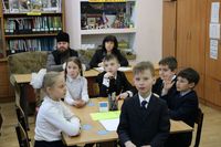 Присутствующий на уроке математики владыка Даниил оценил доступную форму преподавания, которая была представлена ученикам начальной школы в форме сказки, и даже сам принял участие в уроке, дав правильный ответ на задание.