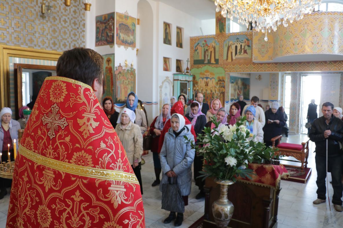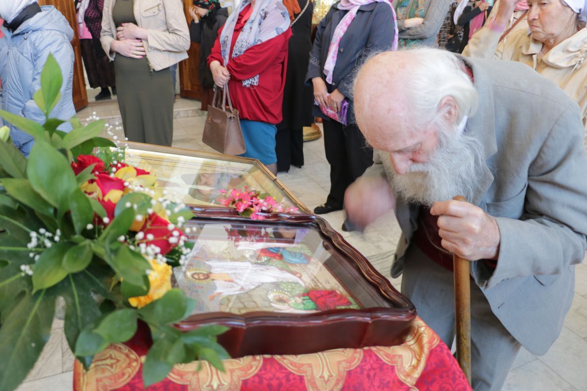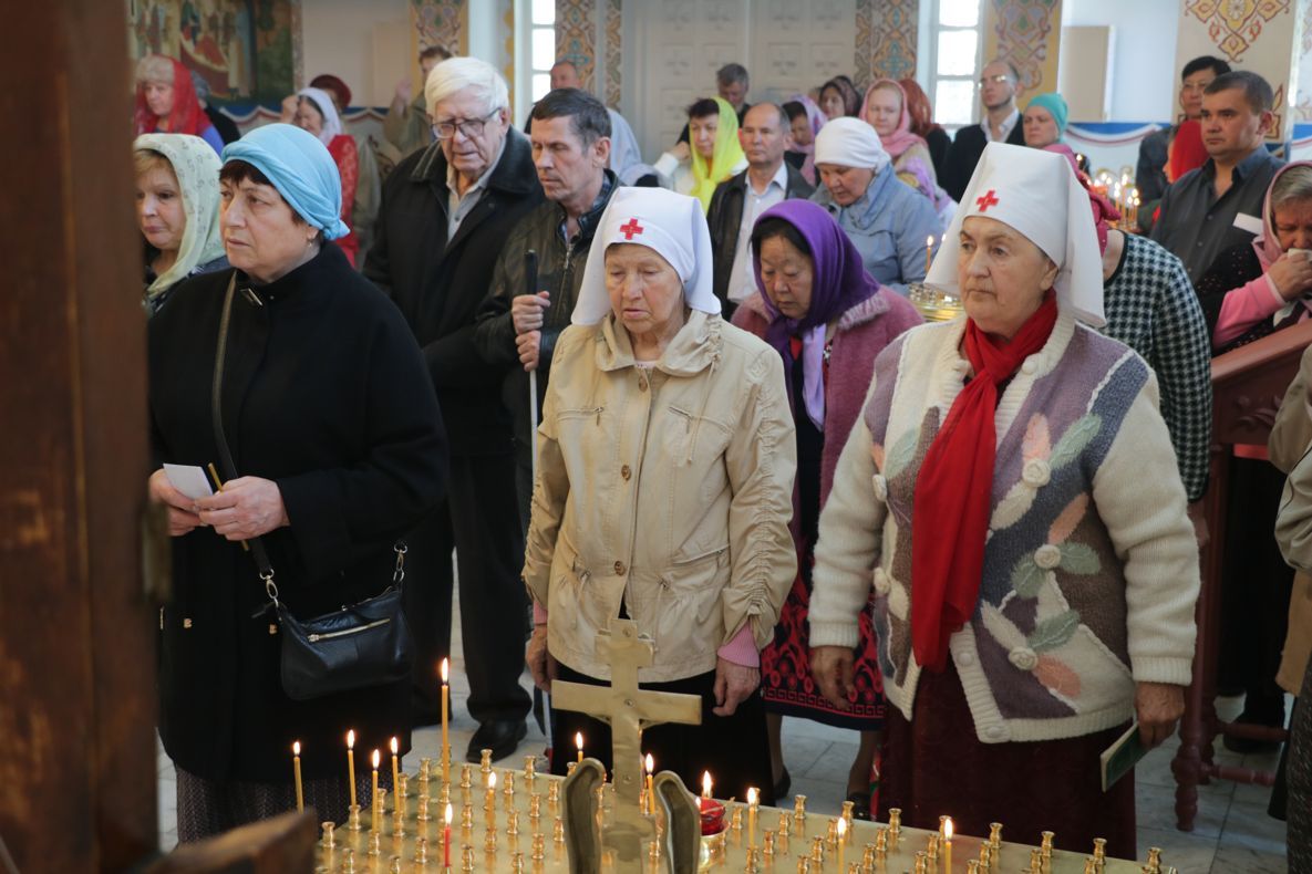 По окончании причащения Его Преосвященство с сослужащим духовенством совершил чин славления и прочёл молитвы святой блаженной матери Матроне Московской и святителю Виктору, исповеднику, епископу Глазовскому.