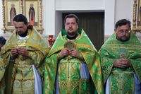 Его Преосвященству сослужили: протоиерей Валентин Никонов, благочинный Беловодского округа, настоятель храма Сошествия Святого Духа протоиерей Алексей Махров, ключарь Свято-Воскресенского кафедрального собора иерей Георгий Дворовой, настоятель Владимирского собора протоиерей Алексий Зайцев, благочинный Чуй-Токмокского округа, настоятель храма Георгия Победоносца протоиерей Александр Атаманов, настоятель храма блгв. кнн. Бориса и Глеба протоиерей Артемий Долотов, настоятель храма Божией Матери в честь Ее иконы «Всех скорбящих радость» протоиерей Василий Пименов, секретарь епархиального управления, настоятель храма Архистратига Божия Михаила иерей Александр Пелин, настоятель храма Покрова Божией Матери иерей Виктор Гончарук, клирики собора иерей Олег Белотуркин, иерей Вадим Паскин, протодиакон Сергий Черкашин.