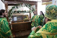 За торжественным богослужением был совершен молебен преподобному Ираклию. В этот день, во время Божественной литургии и до конца службы для особого поклонения была открыта дверца раки с мощами небесного покровителя земли Кыргызстанской.