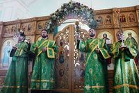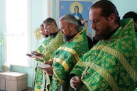 Его Преосвященству сослужили: митрофорный протоиерей Валентин Никонов, благочинный Иссык-Кульского благочиния, настоятель храма Пресвятой Троицы протоиерей Сергий Чувичкин, настоятель Владимирского собора протоиерей Алексий Зайцев, ключарь Свято-Воскресенского кафедрального собора иерей Георгий Дворовой, настоятель храма во имя святого праведного Иоанна Кронштадтского протоиерей Андрей Борисенко , настоятель храма святого великомученика Димитрия Солунского протоиерей Александр Мезенцев , настоятель храма Божией Матери в честь Ее иконы «Всех скорбящих радость» протоиерей Василий Пименов, настоятель храма блгв. кнн. Бориса и Глеба протоиерей Артемий Долотов, настоятель храма Покрова Божией Матери иерей Виктор Гончарук.