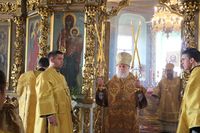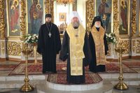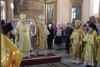 Главе Казахстанского митрополичьего округа сослужили: архиепископ Верейский Евгений, председатель Учебного комитета Русской Православной Церкви; наместник Успенского Трифонова мужского монастыря архимандрит Феодор (Рулев), настоятель Троицкой церкви села Быстрица протоиерей Николай Федько, руководитель информационного отдела Митрополичьего округа протоиерей Евгений Иванов, клирики Вятской епархии.