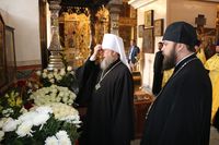Митрополит Александр вознес сугубые молитвы о упокоении митрополита Хрисанфа, его родителей — Антония и Дарии, сродниц — монахини Манефы и монахини Ангелины.