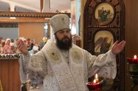 Его Преосвященству сослужили: протоиерей Валентин Никонов, настоятель Владимирского собора протоиерей Алексей Зайцев, ключарь Свято-Воскресенского кафедрального собора иерей Георгий Дворовой, клирики Владимирского собора иерей Андрей Бутаков, иерей Никита Чебуков.