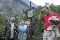 Основываясь на этих воспоминаниях, в мае прошлого года прот. Виктор Реймген уже проводил в Кызыл-Ункуре опрос местных жителей. Некоторые из них рассказали, что видели двух монахов, которые во время войны скрывались в горах. Лишь изредка они спускались в поселок, посещая дома зажиточных русских семей. Эти монахи работали, держали одну-две коровы, у них была пасека – около 10-ти уликов. По словам старожилов, они носили черные одежды и онучи-лапти, ни с кем по дороге не разговаривали, только молились и постоянно плакали. Одного монаха видели в местечке Турбусай, в двух часах езды на лошади от Кызыл-Ункура. Сейчас там джайлоо – горное пастбище.