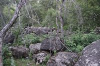 Уже вечером спустившиеся с гор пасечники показали нам кладбище, на котором стоит единственный крест, установленный над родными могилами покойным ныне митрофорным протоиереем о. Дмитрием Козулиным. Пасечники показали нам также фундамент дома и сказали, что семья, крест которой они показали на холме, жила в этом доме. И – главная находка в Алатае – они показали нам «намаз-таш» – молитвенный камень, как его называют местные жители. Это – сооружение природного происхождения из валунов выше человеческого роста. Что примечательно, один из камней имеет плоскую скошенную поверхность. Под валунами – комната, в которую есть небольшой вход. Этот «намаз-таш» находится в конце большого участка за бывшим домом Козулиных, если подниматься на север в гору. Можно с большой долей уверенности утверждать, что обнаруженная нами пещера из валунов и есть то сооружение из камней в конце огорода, куда, по устным рассказам, приводили причащать детей. Можно также предположить, что это – тот самый камень с косой поверхностью, под которым молился старец Серафим.