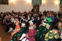 Помимо духовной направленности в творческих номерах проскальзывала тема осени. Она была выражена в рисунках, оформлении зала и школьном осеннем вальсе старшеклассников.