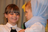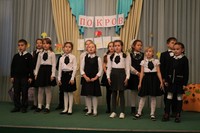 В программе праздника, выражаясь школьным языком – коллективные творческие дела (КТД). Каждый класс подготовил заранее полученные задания. Один класс отвечал за оформление зала, другой представил выставку рисунков. На сцену ребята выходили со стихами, танцами и песнями. Мероприятие началось с показа видеоролика о празднике Покрова Божией Матери, благодаря которому ребята познакомились с его историей, узнали о том, что этот праздник наиболее любим нашим народом, и что в его честь было построено очень много храмов на Руси.