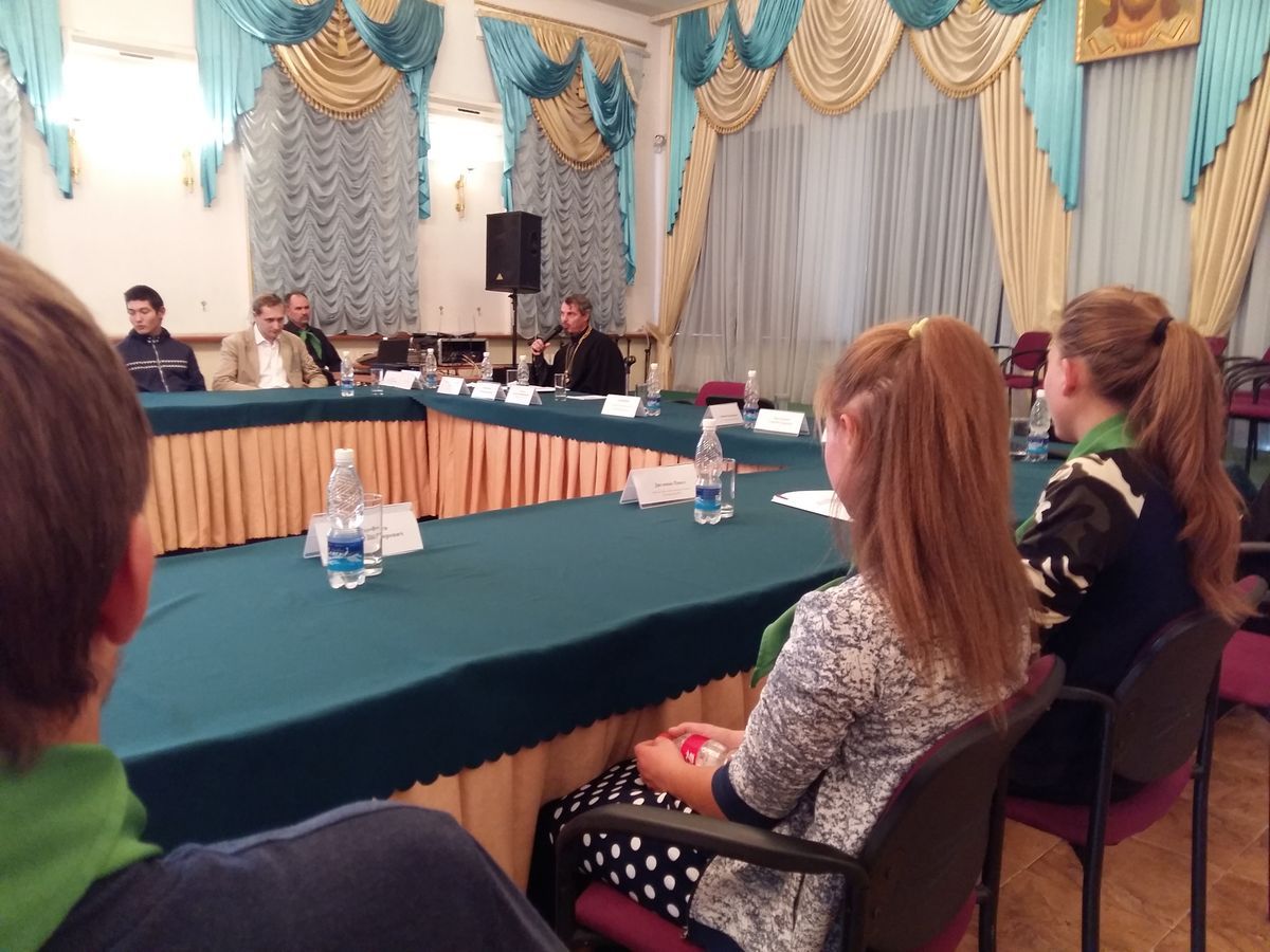 В рамках VI Научно-Богословских Свято-Антониевских чтений 1 ноября в культурно-просветительском центре Свято-Воскресенского кафедрального собора прошел круглый стол православной молодежи со студентами-религиоведами и будущими медиками КРСУ на тему: "Семья и причины ее распада. Как выбрать спутника жизни?" Беседу провел благочинный Таласского округа протоиерей Дмитрий (Шушпанов). Выбранная тема мероприятия оказалась очень актуальной и волнующей всех молодых людей, вне зависимости от вероисповедания. Встреча прошла интересно – студенты задавали много вопросов, активно участвовали в обсуждении, выдвигая гипотезы и проводя параллели с другими мировыми религиями. Приглашаем наших новых друзей присоединяться к нашим беседам и чаепитиям!