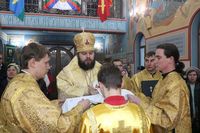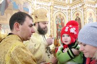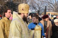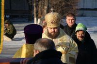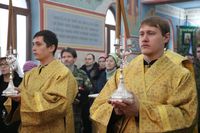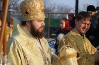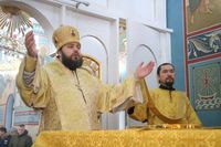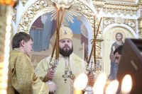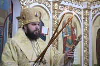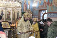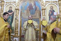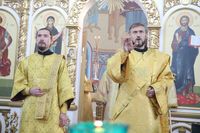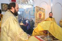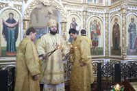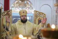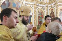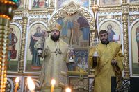 Его Преосвященству сослужили: протоиерей Валентин Никонов, настоятель храма во имя святого благоверного князя Александра Невского иерей Евгений Циклаури, клирик Свято-Воскресенского кафедрального собора иерей Георгий Дворовой.