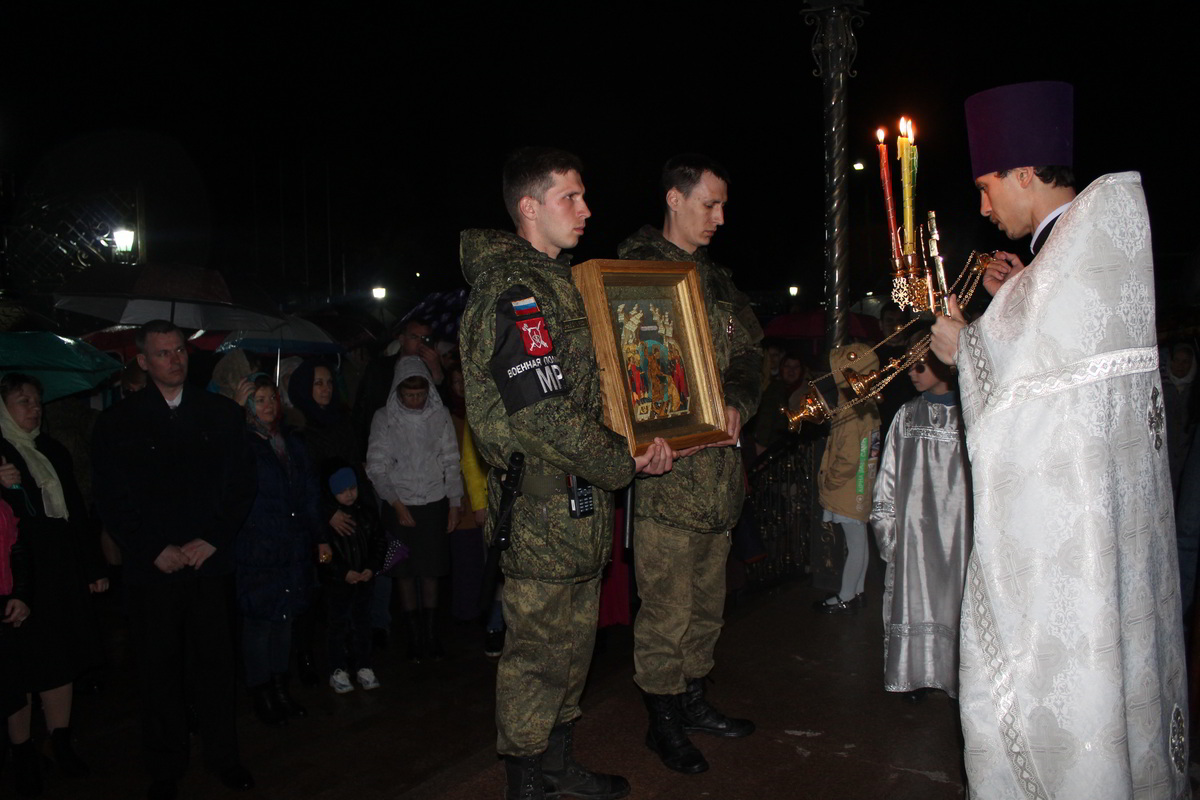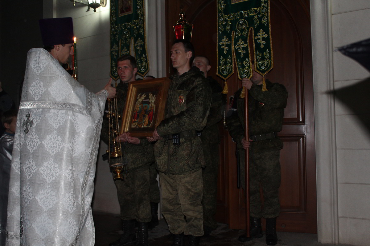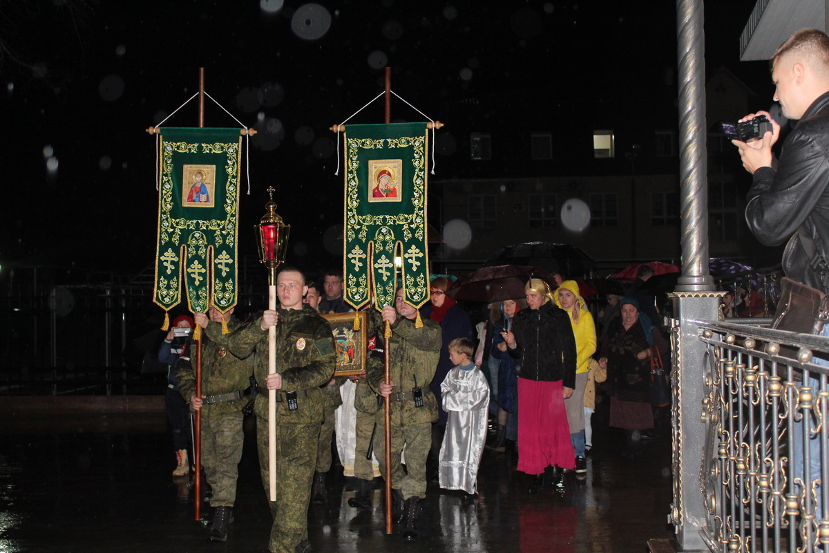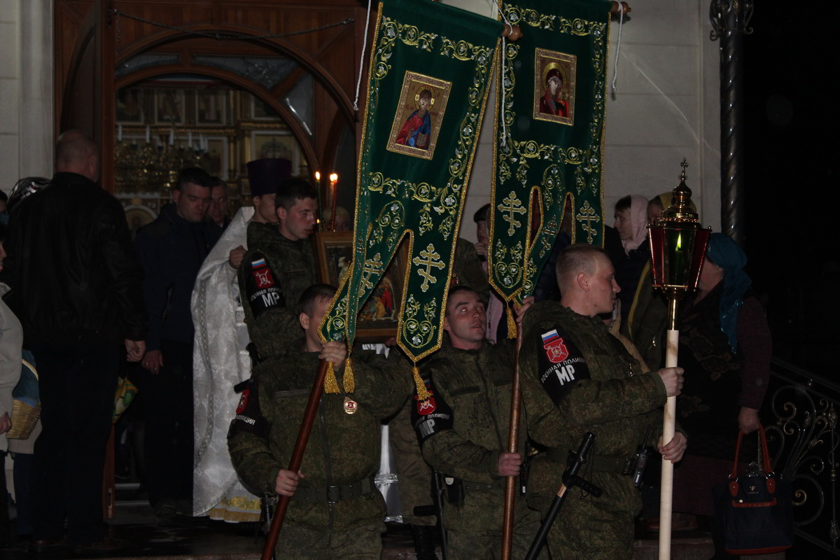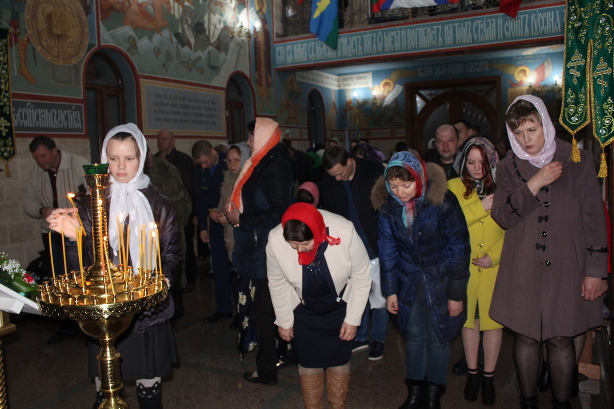 В ночь с 7 по 8 апреля, на территории 999 авиационной базы ОДКБ «Кант» в Храме Александра Невского, во главе с настоятелем храма иереем Евгением Циклаури, прошла торжественная служба в честь светлого Христово Воскресения Пасхи.