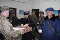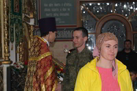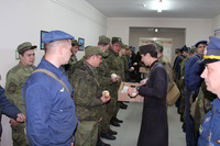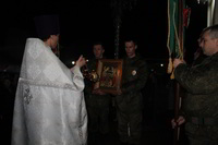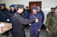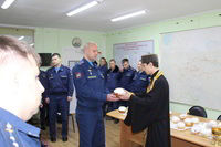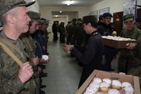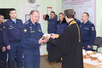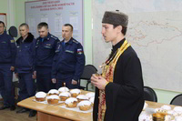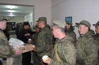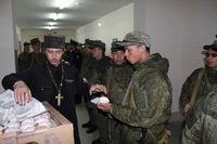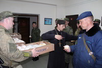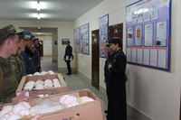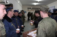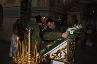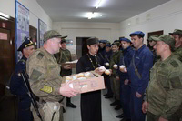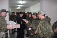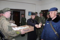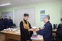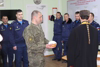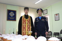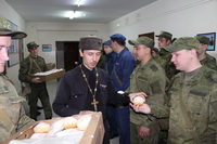 Так же накануне службы настоятель храма поздравил личный состав части, в том числе и тех, кто заступал в наряд, находился на излечении, который в день богослужения не смогли принять участие в Пасхальной службе, с праздником и угостил всех Пасхальными куличами.