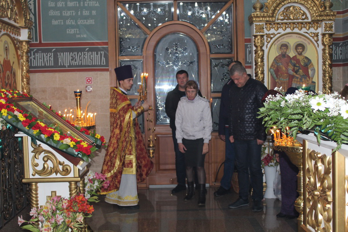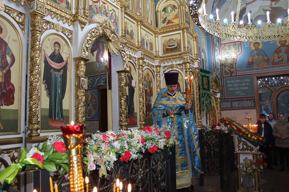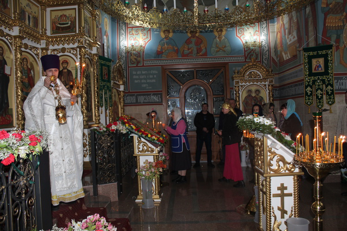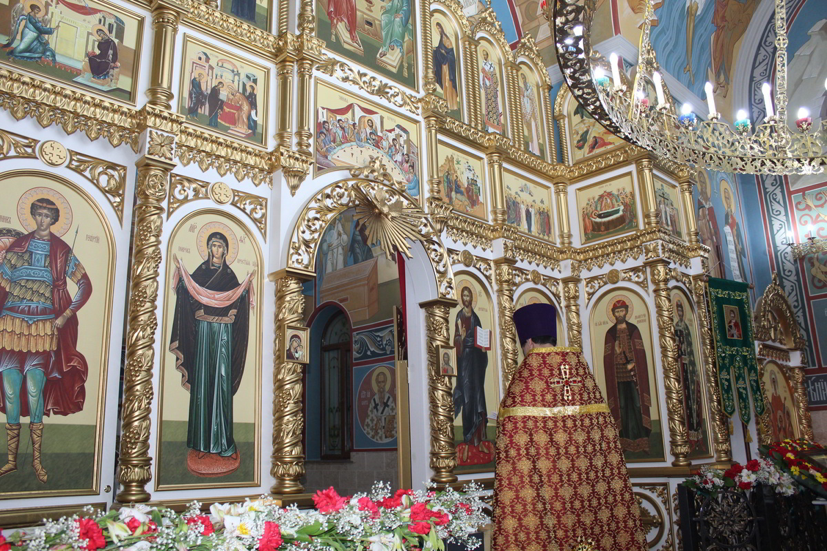 Пасха считается самым главным праздником в православной вере. В этот день храм украшен цветами, зажжены свечи и лампы, в каждом углу храма. Так же священники сменяют черную одежду на светлую. Храм был переполнен прихожанами, которые пришли помолиться на службе. По традиции православного народа в Пасхальную ночь прихожане принесли с собой в храм твороженную Пасху, пасхальные яйца, куличи и другие угощения, чтобы осветить после завершения Божественной Литургии. В процессе пасхальной службы иерей Евгений с прихожанами совершили крестный ход, была осуществлена пасхальная заутреня, и затем прозвучала Божественная Литургия.