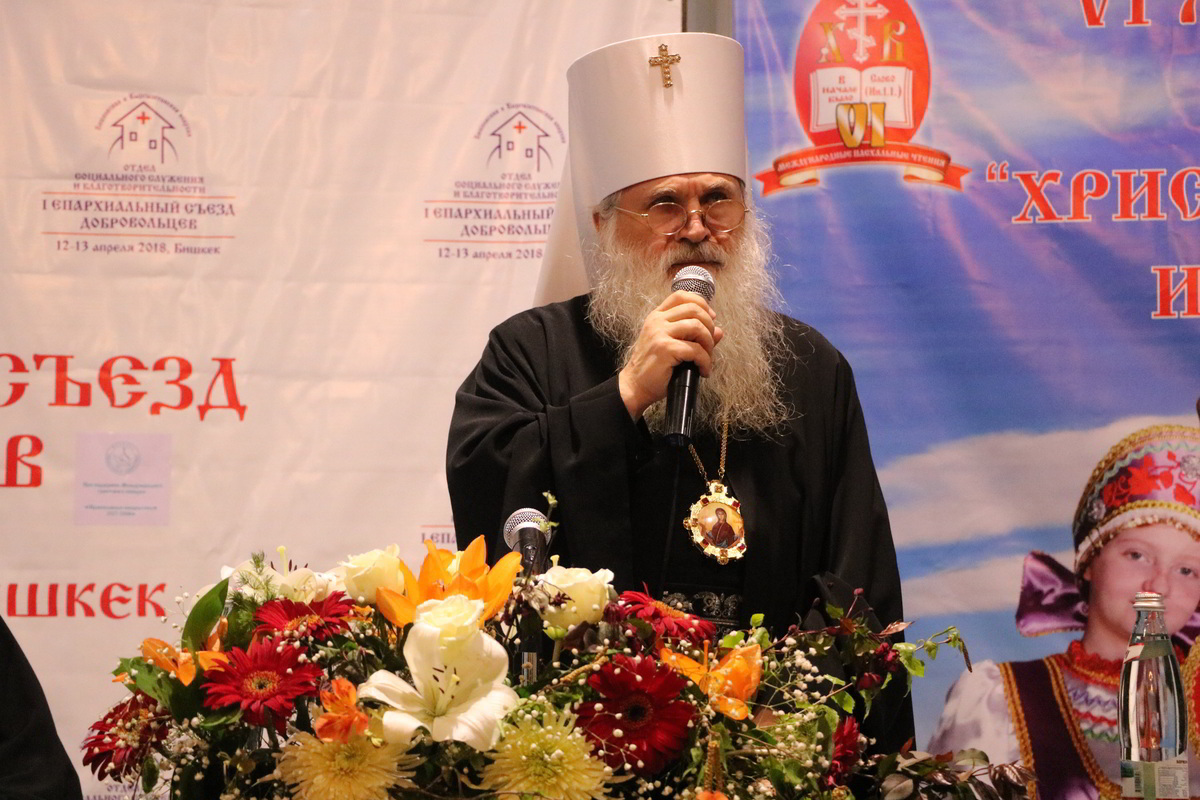 Приветственное слово участникам от Главы Бишкекской и Кыргызстанской епархии епископа Даниила произнес секретарь епархии протоиерей Алексей Сыромятников.