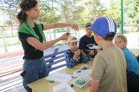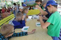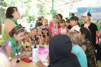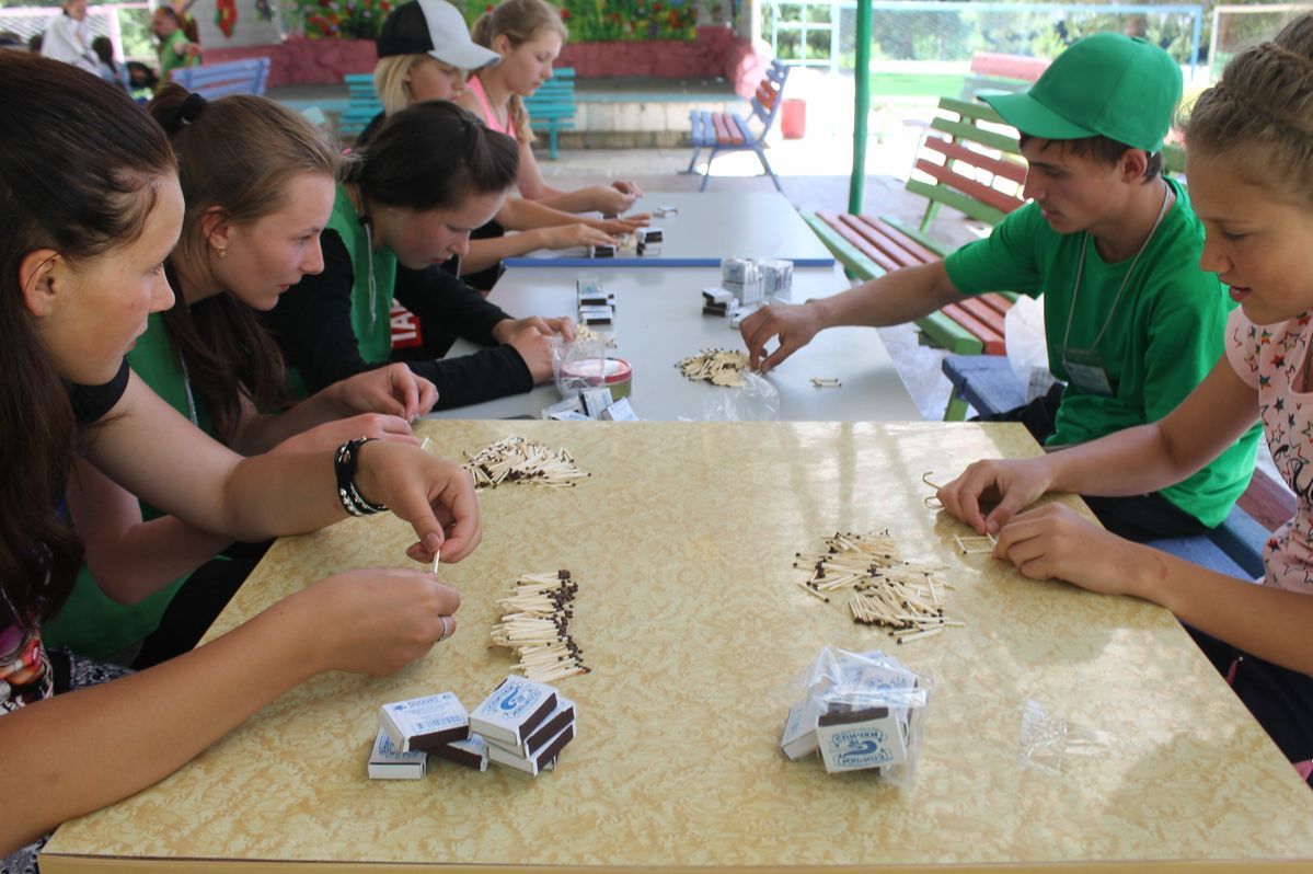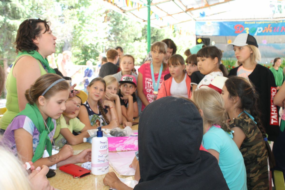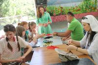 Ребята из младших отрядов завершили изготовление медальонов из «холодного фарфора», поделок из бисера, рисунков на камнях и конструирование воздушных змеев. Кроме того, организаторы делали детям аквагрим, что помогло внести и в без того необычную обстановку еще больше фантазии и сказочности.