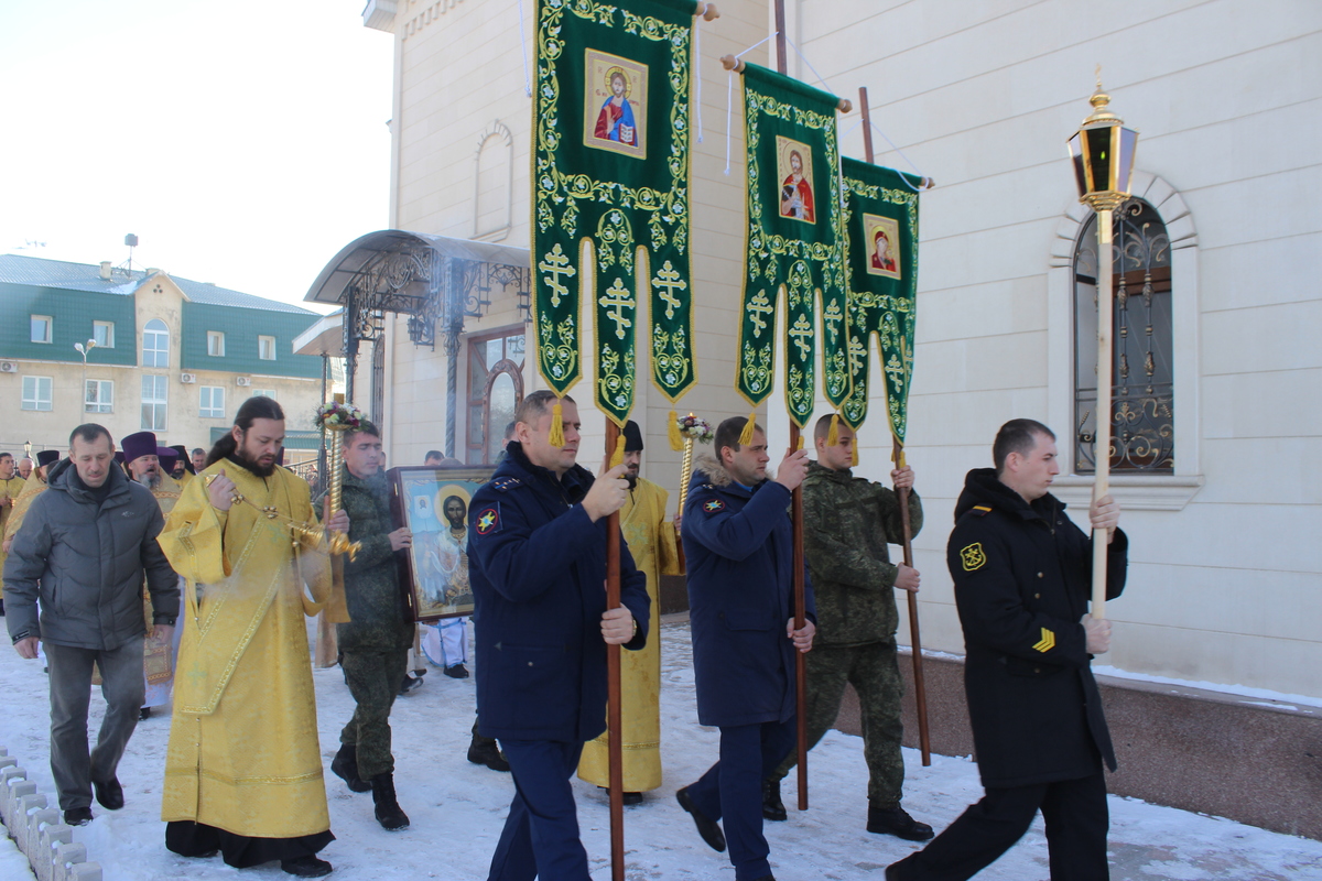Утром 6 декабря духовенство, командование и личный состав авиабазы, юнармейский отряд, кадеты и гости встретили икону святого благоверного князя Александра Невского с частицей его святых мощей. Божественную литургию возглавил протоиерей Валентин Никонов в со служении духовенства епархии и настоятеля Александра-Невского Храма иерея Евгения Циклаури.