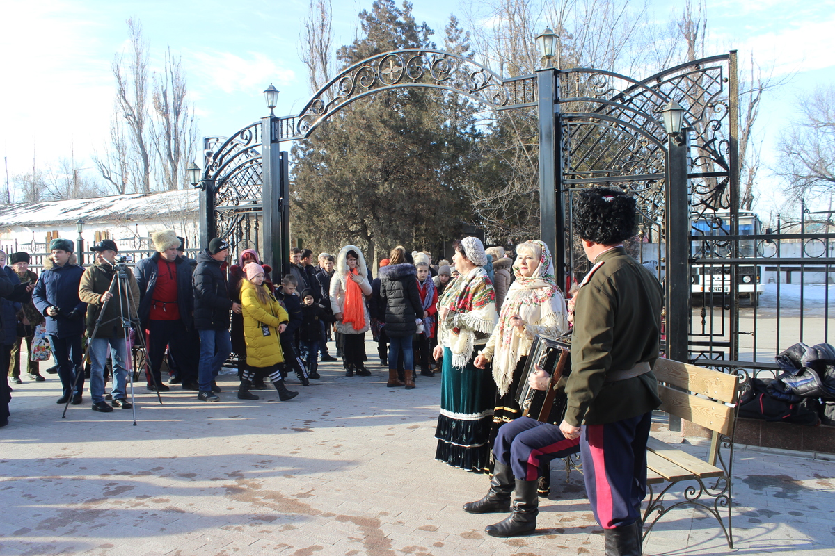 Всем прихожанам, гостям был предложен обед - полевая каша со сладким чаем и казачий концерт под руководством Владимира Белкина.