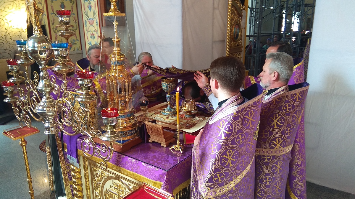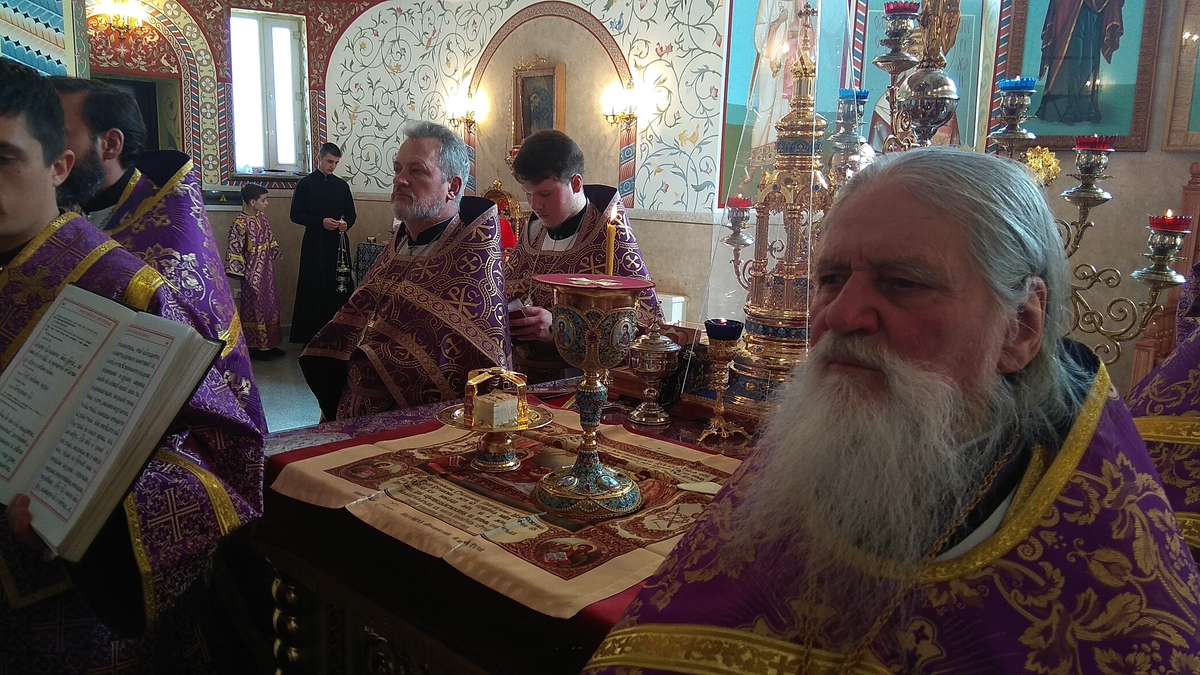 Его Преосвященству сослужили: протоиерей Валентин Никонов, архимандрит Петр (Путиёв), иерей Георгий Дворовой, иерей Владимир Кусаинов, иерей Владимир Ступников.