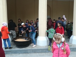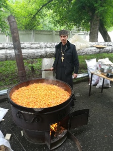 После проведенного концерта, руководитель епархиального отдела по Взаимодействию с Вооруженными силами, иерей Евгений Циклаури, пригласил всех на пасхальный, праздничный плов, приготовленный поварами ресторана «Гавайи».
