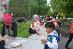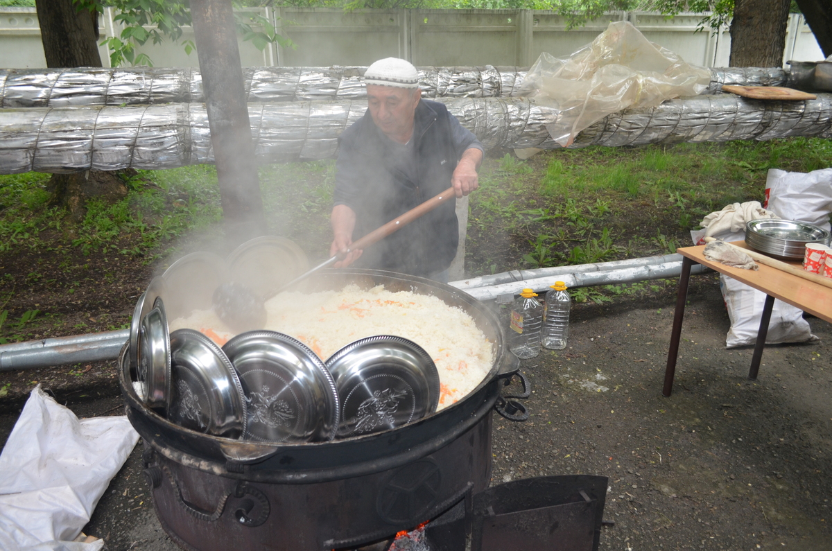 Повара постарались на славу и приготовили 150 кг прекрасного плова на триста человек. Запах плова был настолько вкусный, что очередь за ним собралась еще до его готовности. Каждый хотел попробовать его, поэтому плов разошелся буквально за час. Когда в казане осталось только масло все присутствующие дружно прокричали – спасибо нашим поварам, за то, что вкусно варят нам!