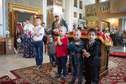 Его Преосвященству сослужило духовенство всех благочиний Бишкекской епархии и приглашенные священнослужители из Молдовы и Италии.