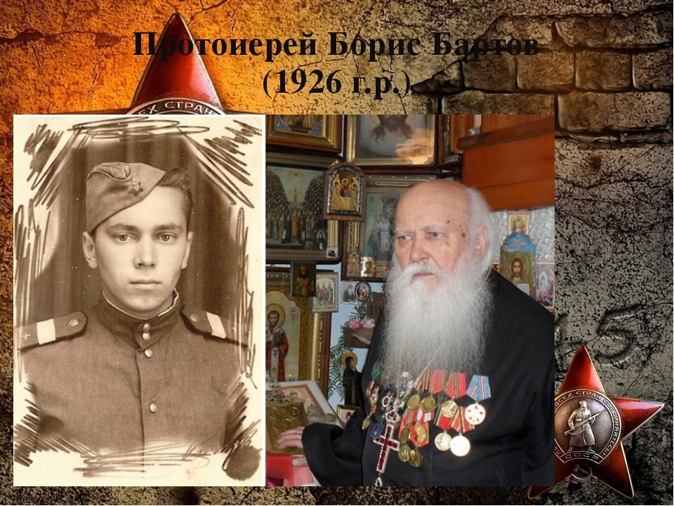 Как известно, в годы Великой Отечественной войны в Красной армии священников не было. Но представители духовенства принимали участие в боевых действиях на всех фронтах Великой Отечественной войны. Многие священнослужители награждены орденами и медалями. Среди них - орденом Славы трёх степеней диакон Б. Краморенко, орденом Славы III степени - клирик С. Козлов, медалью «За отвагу» священник Г. Степанов, медалью «За боевые заслуги» - митрополит Каменский, монахиня Антония (Жертовская).