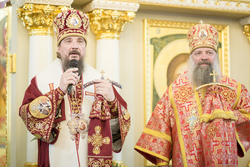 Накануне престольного дня архипастыри возглавили всенощное бдение, а в сам день праздника - Божественную литургию. Архиереям сослужили настоятели храмов Пятигорска, благочинные церковных округов, руководители епархиальных отделов, члены Епархиального Совета, старейшие клирики епархии.