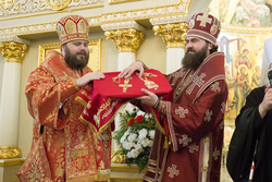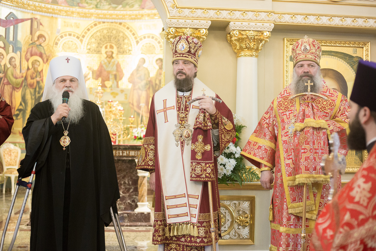 После Божественной литургии и уставного крестного хода митрополит Викентий передал благословение Святейшего Патриарха Московского и всея Руси Кирилла архиепископу Феофилакту, духовенству и верующим Пятигорской епархии. Митрополит Сергий приветствовал владыку Викентия и поздравил владыку Феофилакта от имени собратьев-архипастырей. Архиепископ Феофилакт поблагодарил гостей за радость соборной молитвы.