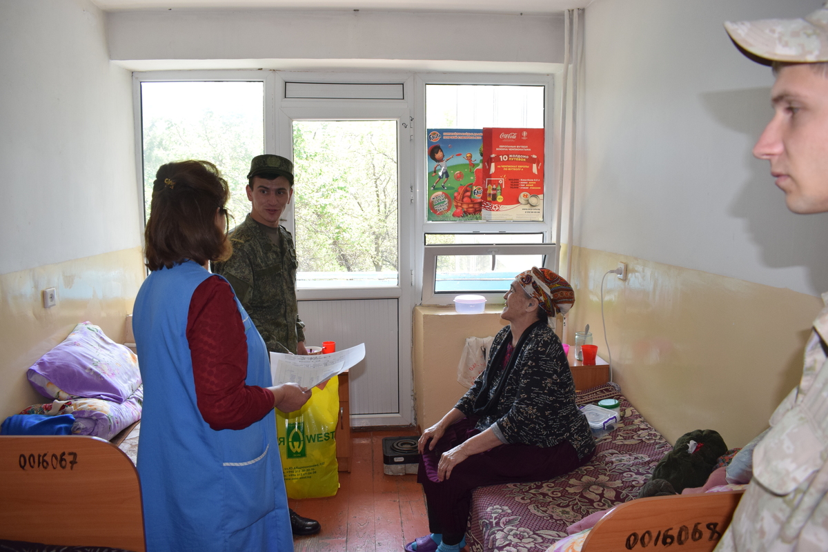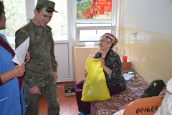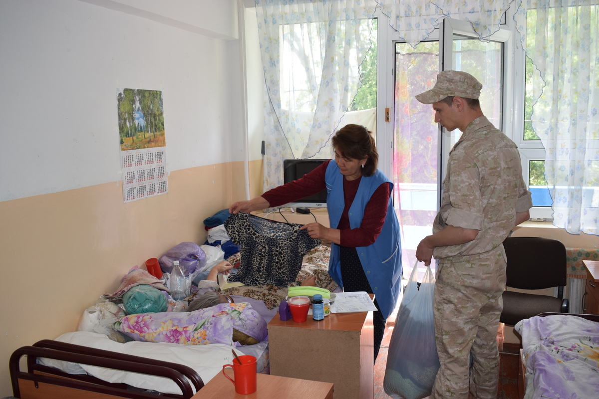 В ходе визита военнослужащие ознакомились с бытом постояльцев и передали предметы одежды в качестве гуманитарной помощи. Постояльцы тепло встретили гостей и поблагодарили за оказанную помощь. Слова благодарности так же высказал директор учреждения Бактыбек Джунушов.