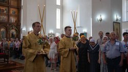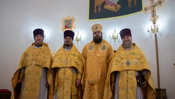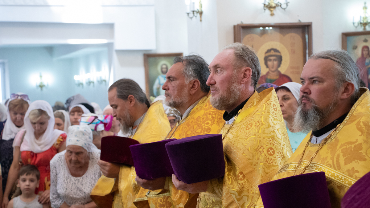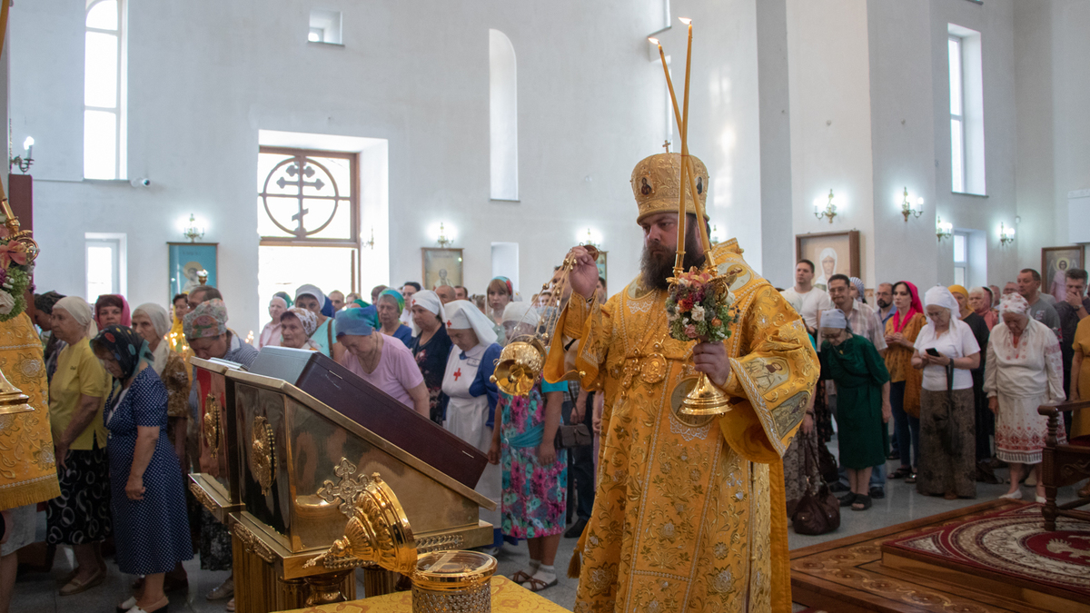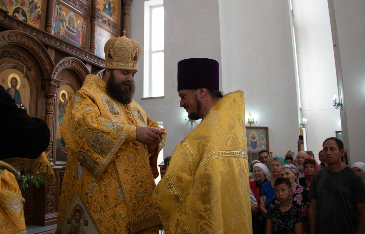 Его Преосвященству сослужили: архимандрит Пётр (Путиёв), благочинный Ошского округа протоиерей Виктор Реймген, благочинный Иссык-Кульского округа протоиерей Сергий Чувичкин, протоиерей Алексей Зайцев, протоиерей Алексей Сыромятников, протоиерей Евгений Мезенцев, иерей Анатолий Золотарёв, иерей Георгий Дворовой, иерей Андрей Бутаков, иерей Николай Пелых, иерей Роман Лебедев.