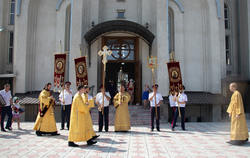 По завершении богослужения владыка возглавил крестный ход вокруг храма, а затем обратился с архипастырским словом к прихожанам. В своем обращении владыка напомнил, что прошло уже 8 лет с тех пор, как была образована Бишкекская и Кыргызстанская епархия. «Это промыслительно, что епархия была образована именно в этот день – день памяти равноапостольного князя Владимира – Крестителя Руси, благодаря которому древнерусский языческий мир преобразился в мир православный. Смотря на жизнь и на труды князя Владимира, мы должны созидать как свой духовный и внутренний мир, так и внешний церковный мир».