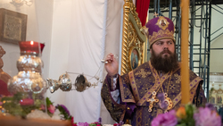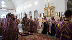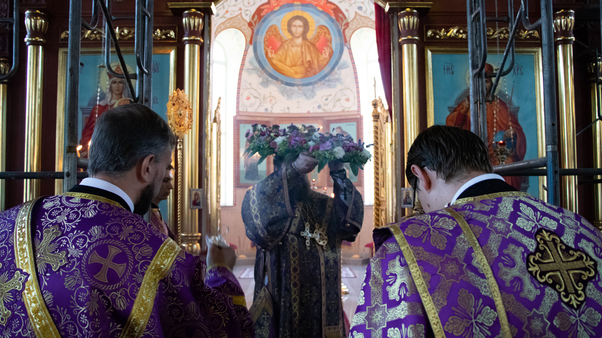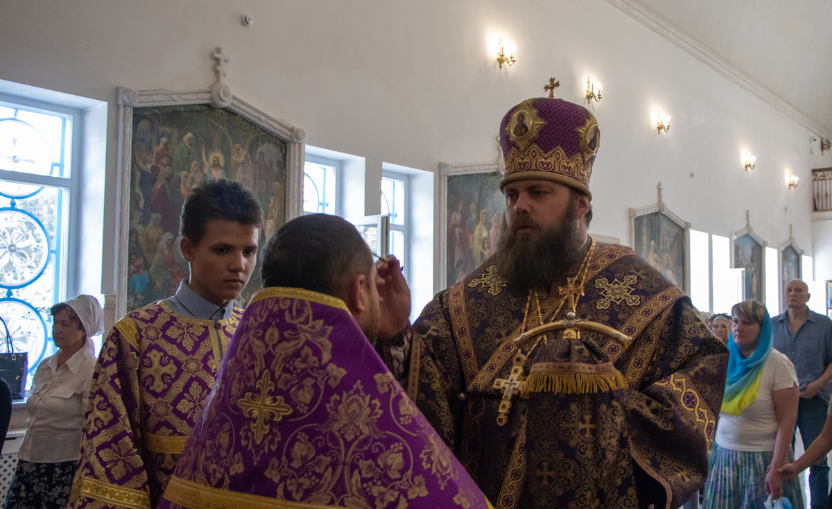 Его Преосвященству сослужили: архимандрит Петр (Путиёв), протоиерей Андрей Борисенко, протоиерей Андрей Кунавин, иерей Георгий Дворовой, иерей Никита Чебуков, иерей Владимир Кусаинов.