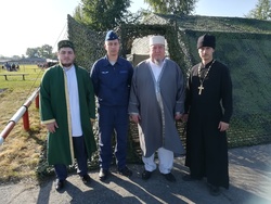 В ходе учений "Сплоченность-2019" были развернуты полевой храм и мечеть. Личный состав авиабазы приняли участие в Богослужении и ознакомился с историей и бытом Храмов города