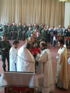 По завершению учений было освящено боевое знамя радиотехнического полка, станции, военные объекты, автопарк и проведена беседа с личным составом на тему Церковь и Армия.