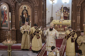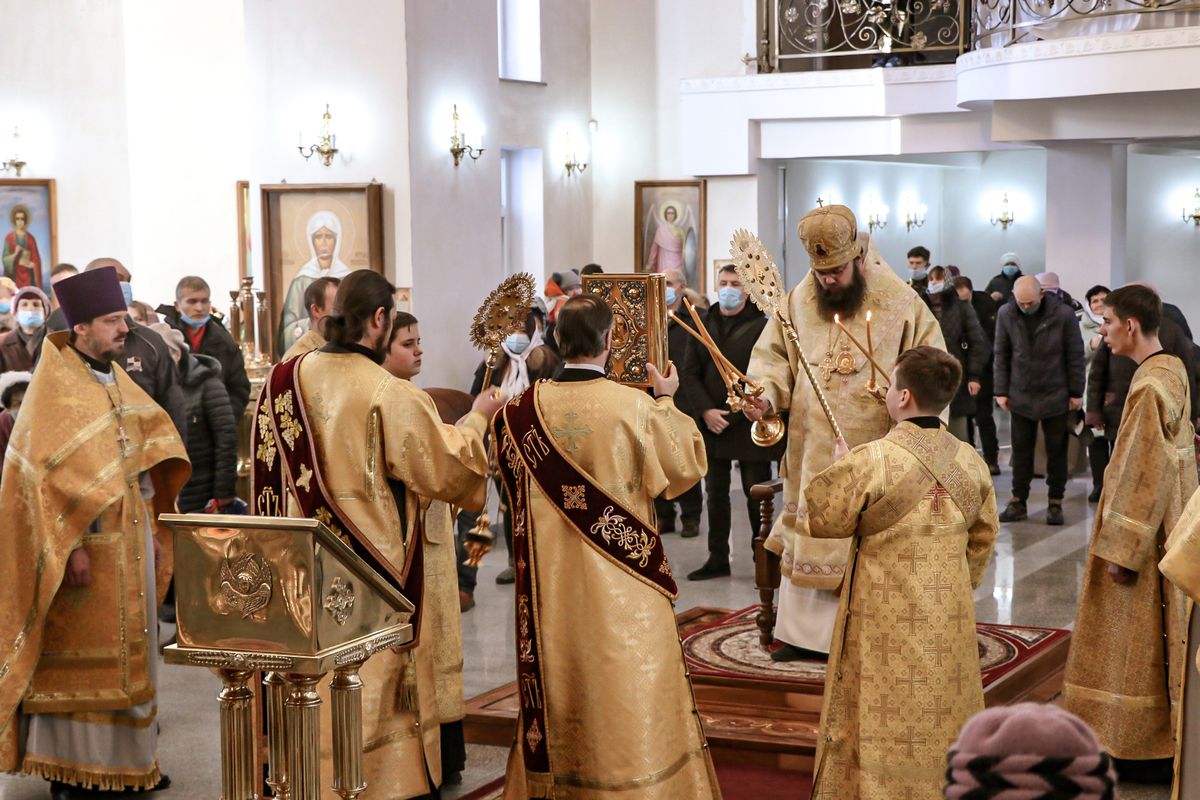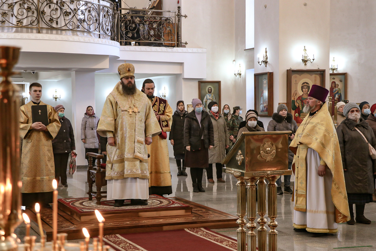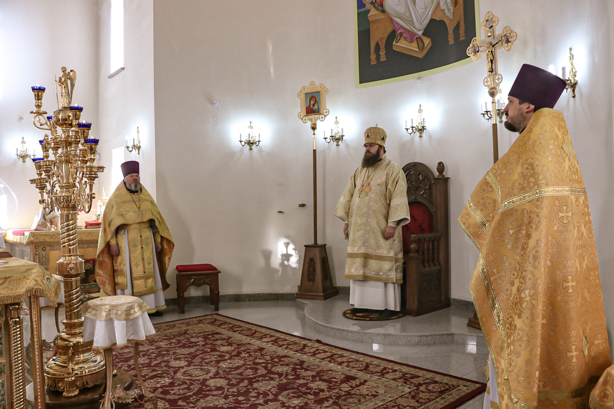 Его Преосвященству сослужили: протоиерей Андрей Кунавин, иерей Георгий Дворовой.