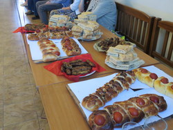 Между танцами и музыкальными номерами ведущие бала знакомили участников с интересными особенностями празднования Пасхи в Греции. Для наглядности было представлено короткое видео. Чтобы еще больше проникнуться атмосферой греческой Пасхи и ощутить ее «вкус», для участников бала были приготовлены традиционные греческие блюда – цуреки (пасхальный хлеб – плетеный сдобный калач с покрашенными яйцами) и кубэс (мясные палочки с пшенной посыпкой).