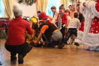В зале визг и радостное оживление, малыши играют в снежки с самим Дедом Морозом. Он только что прибыл из далеких далей, танцует и поет вместе со всеми, проводит разные веселые конкурсы. А теперь наступила малышовая чреда порадовать Морозного гостя. Маленькие человечки в разноцветных костюмчиках неуклюже, но очень старательно танцуют для любимого дедушки танец «Лавата». Дед Мороз восхищен и дарит им свой веселый танец «Барыня». Малышня в восторге. Дед Мороз уморился, присел, а крохи норовят потрогать его. Особенно им нравится роскошная дедова борода.