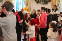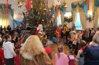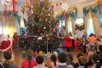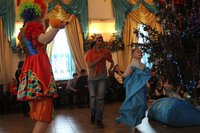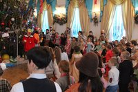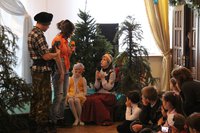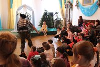 Представление в самом разгаре! Вокруг елки кружатся Петрушка и Коломбина, вовлекая малышей в сказочное путешествие. Петрушка рассказывает малышам историю Христовой Елки. Более 2000 лет назад все плодоносные деревья – яблони, груши, сливы и черешни принесли свои плоды Родившемуся Спасителю Христу-Младенцу. А елочка, не имея плодов, была очень печальна от того, что ничем не могла порадовать чудесного Малыша. Она скромно стояла в сторонке и лишь поблескивала огоньками слез, поклоняясь Христу. Но Младенец заметил ее, осыпал ее Своей Радостью, вознаградил ее за кротость, и красавица засверкала Рождественскими огнями и украшениями. С тех пор Елочка стала символом Рождества Христова и радует детей и взрослых каждый год в Святое Рождество.