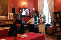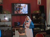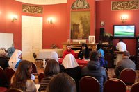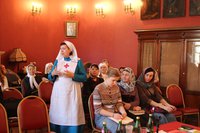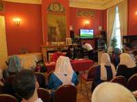 Право открыть чреду докладов на секции "Помощь бездомным в традициях Троице-Сергиевой Лавры " было предоставлено Бишкекской и Кыргызстанской епархии. Наталья Николаевна Удодова, руководитель епархиального Сестричества Милосердия во имя св. прпмч. Великой Княгини Елисаветы Феодоровны представила презентацию о деятельности отдела социального служения Бишкекской епархии, в частности, Сестричества Милосердия. Доклад получился интересным и достойно представившим труды кыргызстанцев в делах милосердия. Работа секции одновременно транслировалась в интернете, что позволило отвечать не только на вопросы присутствующих в зале, но и вести интерактивное общение. Всего для секции было подготовлено 8 докладов: