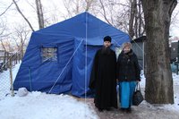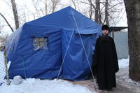 После заслушивания докладов все участники секции во главе с Епископом Бишкекским и Кыргызстанским Феодосием выехали в город, чтобы познакомиться с работой действующей в настоящее время в центре Москвы палатки для обогрева бездомных и машины для санобработки бездомных - проекте синодального отдела социального служения Московской Патриархии.