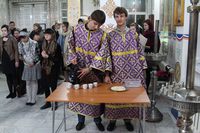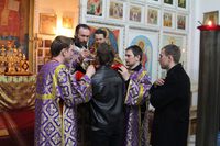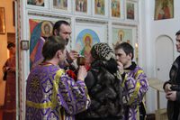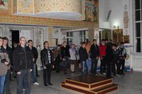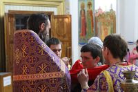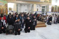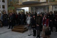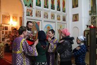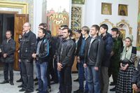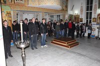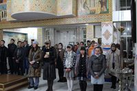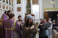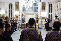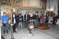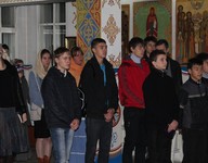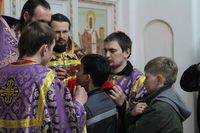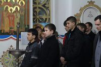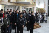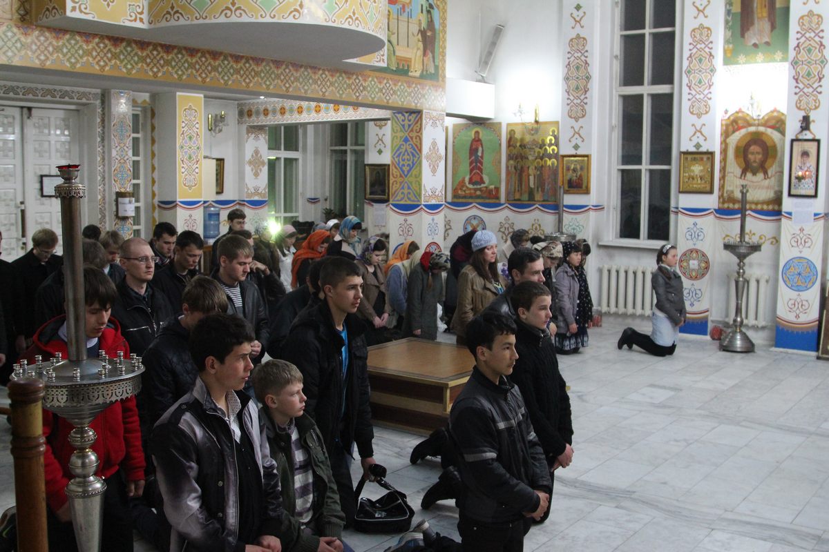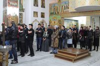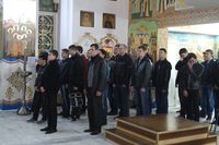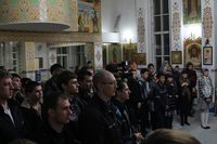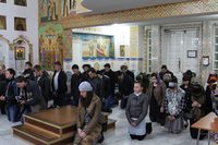 В ночь с 28 на 29 марта этого года в Алексеевском приделе Свято-Воскресенского кафедрального собора впервые состоялась Молодежная ночная Божественная Литургия. Более шестидесяти молодых людей из храмов Бишкека, Канта, Токмока, Сосновки, Беловодска и Военно-Антоновки приехали в Собор для совершения Богослужения. На клиросе пел молодежный хор Воскресенского Собора под управлением регента Насти Озмитель. Литургию возглавил иерей Андрей Кунавин, благочинный Центрального благочиния, настоятель собора во имя св. блг. Великого Князя Владимира. Ему сослужили иерей Александр Мезенцев, настоятель храма во имя вмч. Димитрия Солунского в селе Сосновка и иерей Артемий Долотов, настоятель храма свв. блг. Бориса и Глеба в селе Военно-Антоновка.