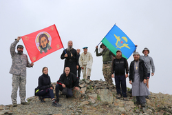 В подъеме участвовали десантники, поэтому в честь прошедшего накануне дня Воздушно-Десантных Войск на пике был развернут флаг ВДВ.