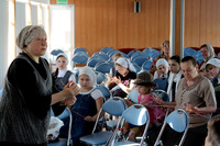 Затем состоялся мастер-класс исполнительницы духовных песнопений Фотины Никольской по рукоделию. Свои таланты Фотина Никольская развила не только в музыке и исполнении песен, но и в необычном виде рукоделии – плетении косынок для покрытия головы.