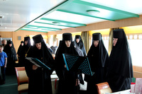 До обеда состоялся концерт воспитанниц Николо-Сольбинского женского монастыря, порадовав архипастырей и всех зрителей духовными песнопениями.