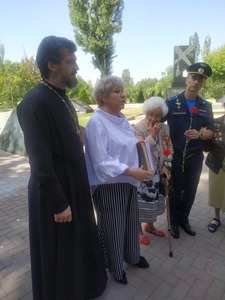 8 сентября руководитель епархиального отдела образования и катехизации протоиерей Андрей Кунавин, директор школы святого князя Владимира Аристова Светлана Ивановна с учениками школы приняли участие в акции "Урок памяти", которая прошла в Бишкеке возле памятника блокадникам.